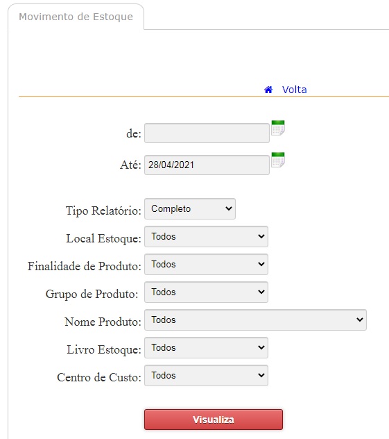 Movimento por períodos que permite o acompanhamento das movimentações com filtros variados.