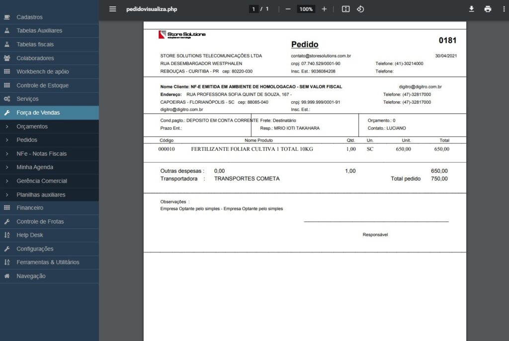 A utilização de rotinas modernas com o uso da internet e formatos PDF durante a emissão de propostas, pedidos e NFE transformam a solução num aliado importante no processo de venda, já a emissão de pedidos e notas fiscais fazem uso de uma grande variedade de recursos que interagem com as naturezas da operação e as exigências do SEFAZ